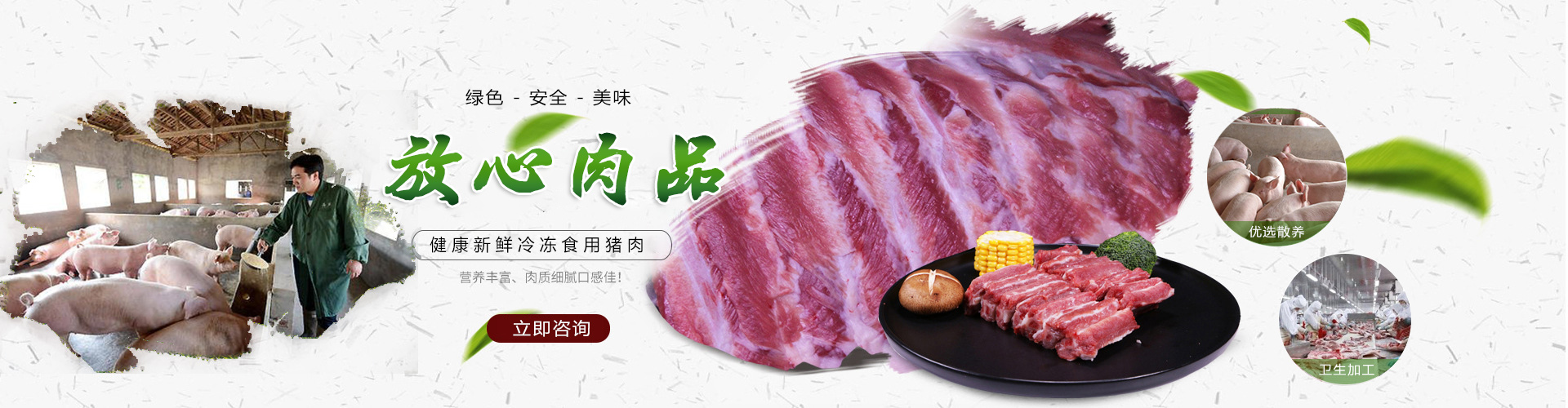 茂名市食品有限公司精選優(yōu)良無(wú)公害養(yǎng)殖場(chǎng)作為貨源基地,生產(chǎn)的豬肉肉質(zhì)鮮嫩無(wú)污染無(wú)公害,用心做老百姓放心的食品,把健康送到千家萬(wàn)戶(hù)。